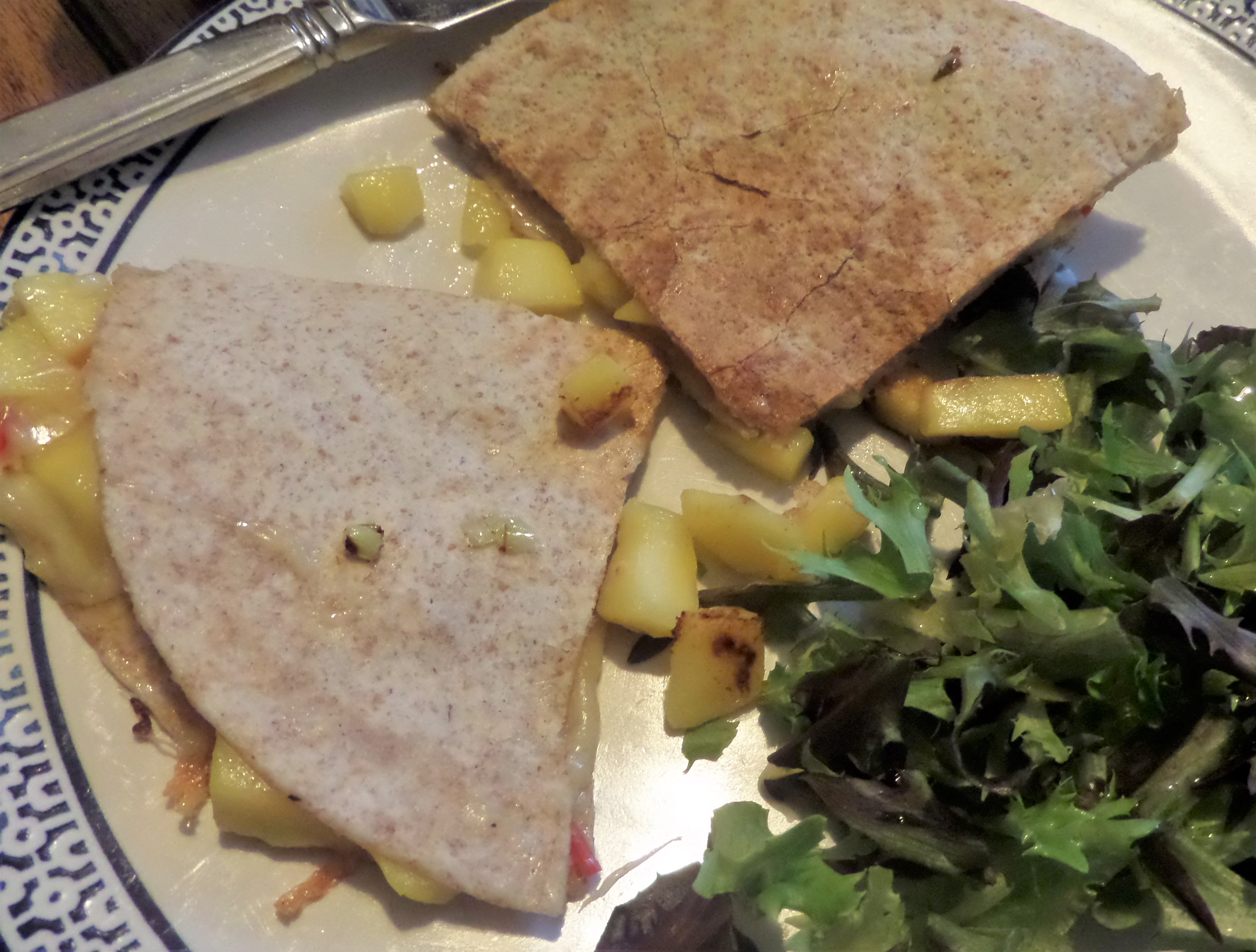 I decided to make quesadillas since no-one in my family has ever complained about those. There are three options for fillings in the book and I picked mango with Gruyere, which doesn’t sound particularly Mexican but I thought it would be an interesting combination to try.